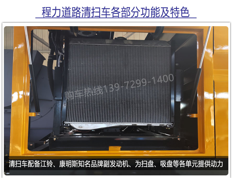 二、上裝配置: 標配掃盤4把;掃盤轉速實現獨立3檔調速;大力馬達;施耐德控件開關;臺灣液壓閥;皖液液壓油泵;新西山水泵;免維護自分離式離合器;免維護風機;不銹鋼水箱;不銹鋼垃圾箱;尾部LED箭頭燈;手動泵應急系統;前掃刷臂轉動機構使用高新耐磨工程隔套,免打黃油;精密冷彎無縫液壓油管。