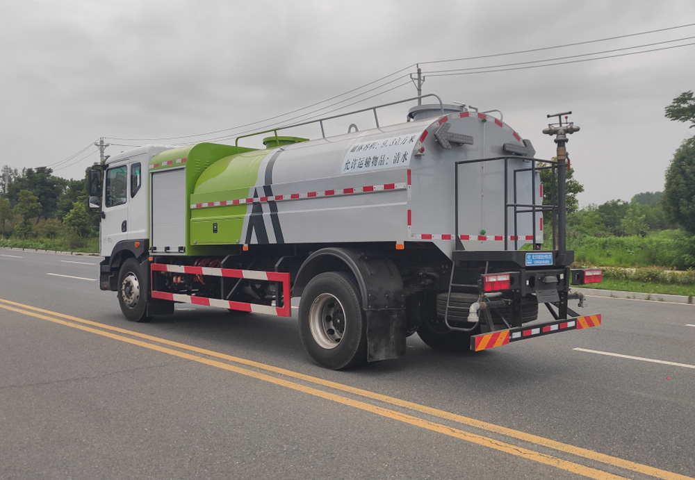 四、其他說明: 東風(fēng)多利卡純電動灑水車是在東風(fēng)EQ1181DACEV1二類底盤的基礎(chǔ)上,加裝低壓沖洗、灑水系統(tǒng),由機(jī)械、液壓(氣路)、電器三部分合為一體的專用灑水作業(yè)車。采用自吸式雙級離心泵,效率高、灑水寬度大、水槍射程遠(yuǎn),低壓水泵由底盤變速器取力器通過傳動軸直接傳動。