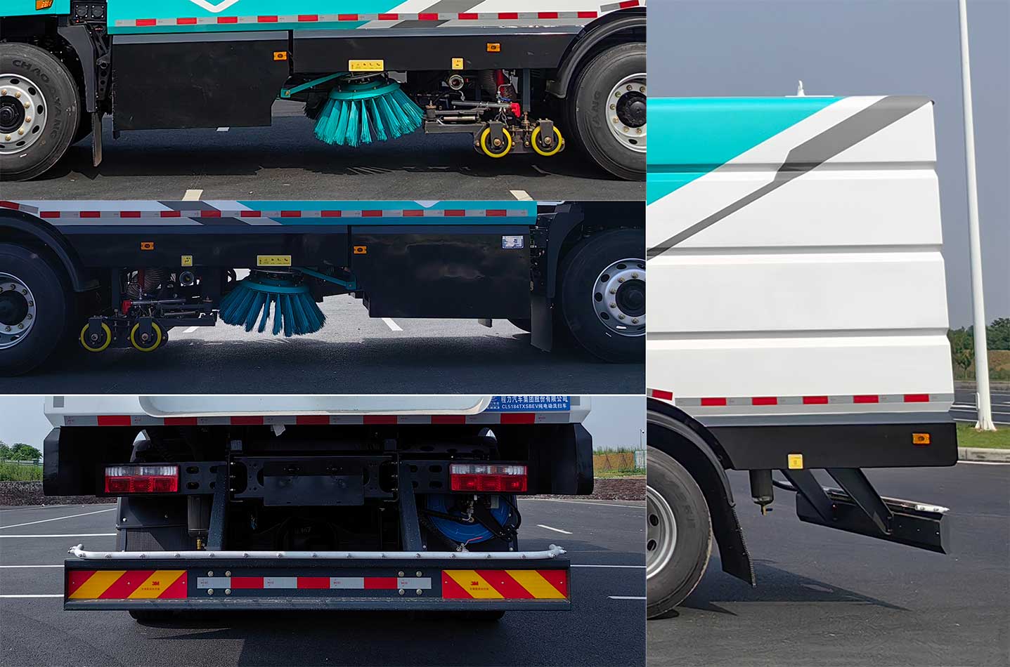 四、其他說明: 該款純電動洗掃車是我公司開發的新一代環衛產品,采用CL1181JBEV型二類載貨汽車純電動底盤改裝。具有路面洗掃、清掃、清洗,可清洗路沿,路緣石立面、前角噴、后噴霧,高壓噴槍可清洗路標、廣告牌等功能。選裝低壓灑水系統時,可進行低壓前對沖或鴨嘴沖洗。