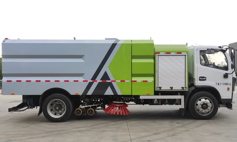 7、程力牌純電動(dòng)洗掃車具有路面清洗、路面清掃、路緣清洗、路緣和路緣石立面洗刷、低壓沖洗、噴霧除塵等多功能。有“全洗掃”、 “左洗掃”、 “右洗掃”、 “全掃”、 “左掃”、 “右掃”等多種作業(yè)模式可選擇。選擇“全洗掃”模式清洗廣場(chǎng)和路面,清洗效率高效果好,洗凈率達(dá)90%以上。選擇“左洗掃”或“右洗掃”模式清洗路面和路緣、洗刷路緣石立面。需要進(jìn)行路面清掃或路面保潔作業(yè)時(shí),可選擇掃路模式。需要噴霧除塵時(shí),可開啟噴霧裝置,進(jìn)行噴霧除塵作業(yè)。