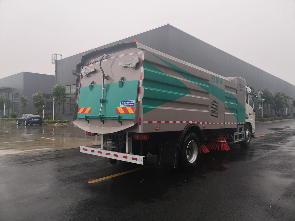3、掃路車采用東風純電動二類汽車底盤改裝,加裝風機、清水箱、垃圾箱、左右立掃、掃盤降塵系統、液壓系統、專用裝置電控系統和副車架等改裝而成。