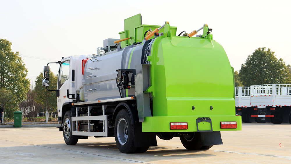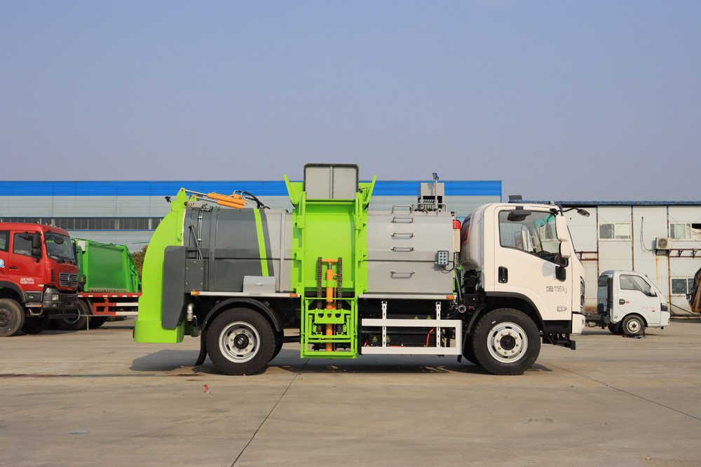 該車特點 由于餐廚垃圾車上裝結構復雜,自質量較大,降低餐廚垃圾車自質量,提高其載荷 利用率,將降低車輛運營成本。因此采用高強度材料,以降低上裝自質量;擋泥板、裝飾件、蓋 板等輔助件采用密度較小的注塑件,采用集成化程度較高的零部件,以減少空間占用和自質量, 同時有利于改善液壓系統的工作性能。專人試車;模擬各種復雜工作環境,所有壓縮發車前實物測試。