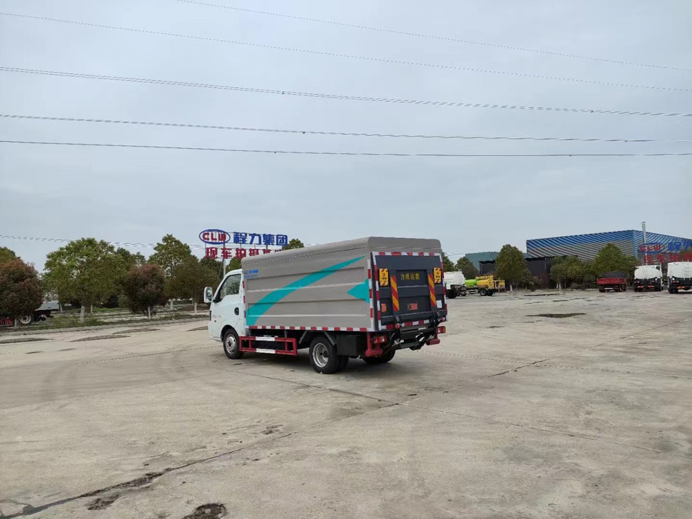 產(chǎn)品介紹: 1、箱體采用開放式結(jié)構(gòu),可裝載12個240L 標準垃圾桶,符合城市垃圾桶換桶的收集模式。      能夠確保垃圾不落地、同時防止拋灑滴漏等現(xiàn)象,有效解決垃圾運輸過程中的二次污染問題。 2、箱體尾部安裝液壓尾板,配力威遠鑫500KG液壓尾板,具有升降功能,滿足桶裝作業(yè)要求; 3、尾板主要由舉升油缸、翻轉(zhuǎn)油缸及調(diào)平油缸控制,實現(xiàn)面板上升、下降、調(diào)平、開門、關(guān)門       等動作。液壓尾板具有自動調(diào)平功能,可使得裝桶工作過程更加平穩(wěn)、安全。 4、液壓尾板舉升時間10~12s,相比同類產(chǎn)品的12~14s,能有效提高裝桶作業(yè)效率。 5、箱體及尾板部分采用了輕量化的設(shè)計思路,使得整車的燃油經(jīng)濟性有了極大程度的提升,       能夠大大降低運營成本;尾板設(shè)計部分融入了模塊化的設(shè)計理念,使得后期的維護及保養(yǎng)       工作更加便捷、高效。廠區(qū)實拍 程力專汽實力之選 專用汽車行業(yè)資質(zhì)最全、品類最多的企業(yè) 完善的質(zhì)量管理體系 廠家直銷,沒有中間商 購車流程 國家標準售后服務(wù)五星級 廠家直銷服務(wù)熱線