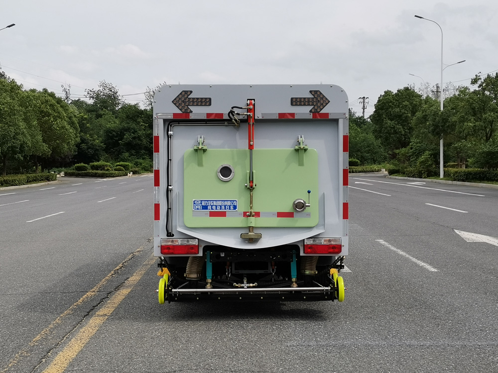 四、其他說明: 東風途逸純電動洗掃車是我公司自行設計開發、具有自主知識產權、國際領先技術水平的新一代路面、路沿清洗、清掃及噴霧降塵的專用設備。該款洗掃車結合了掃路車及高壓清洗車的功能特點,并解決了吸塵車無法在城市道路上清洗路沿的短板,在作業時利用掃刷將地面垃圾掃向車內側,路面的頑固附著物由高壓噴水桿噴出的水流沖起,再由吸盤吸入垃圾箱儲存.具有綠色環保、功能齊全、設計合理、能耗低、清洗范圍廣、使用壽命長等特點。