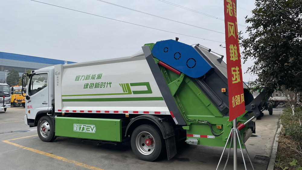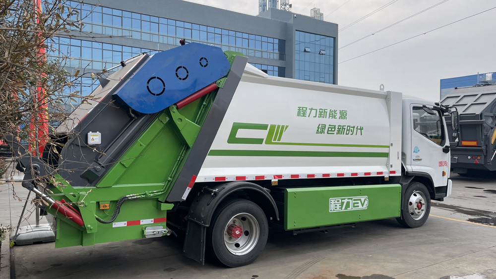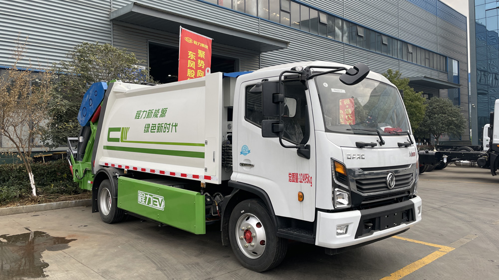 四、其他說明: 東風凱普特純電動壓縮式垃圾車,該車裝備有垃圾箱體,液壓機構及垃圾裝填器,用于將垃圾自行壓實裝入,轉運和卸料功能;