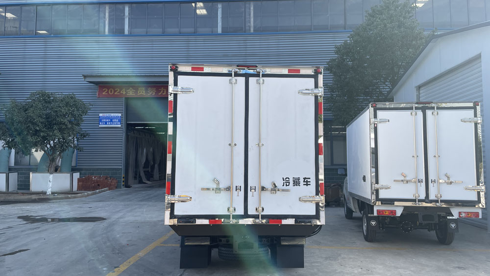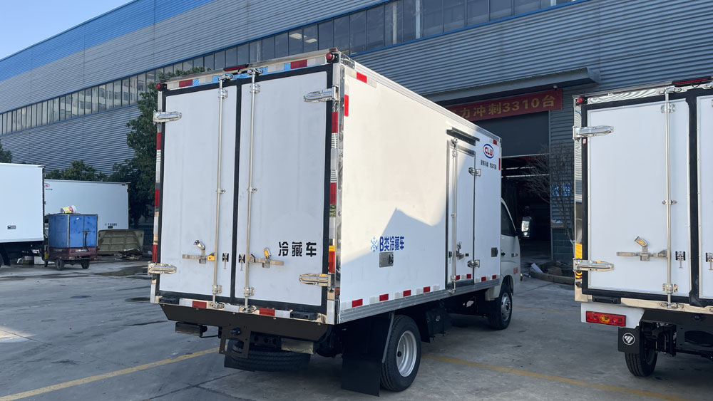 福田祥菱3.1米B類冷藏車可在廂體頂部選裝軌道肉鉤、及在廂體底部選裝T型通風槽
