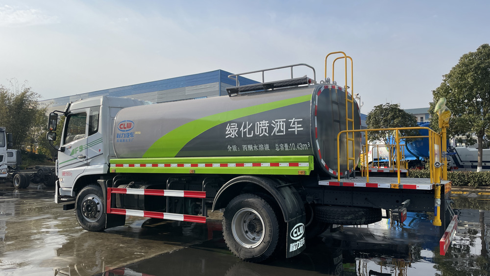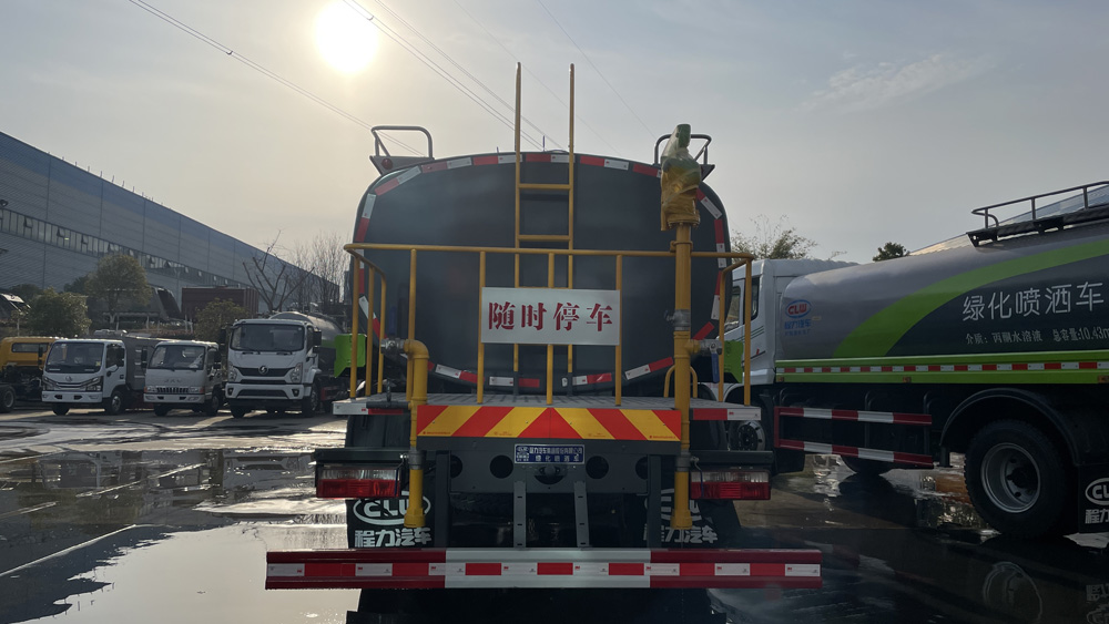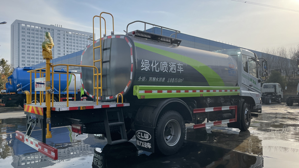 該車特點 罐體由國標(biāo)5mm厚優(yōu)質(zhì)碳鋼板一次性卷壓成型,二保焊行走小車自動焊接,焊縫均勻、美觀,避免了人工焊接的漏焊和虛焊,罐體內(nèi)部加固處理,并設(shè)置防浪板,罐體內(nèi)外做防銹處理,標(biāo)配前沖、后灑、側(cè)噴、后置式工作平臺,平臺帶踏梯,四周有安全護欄,平臺上設(shè)有高壓水炮,可360°旋轉(zhuǎn),可調(diào)成:直沖狀、大雨、中雨、小雨、毛毛雨。